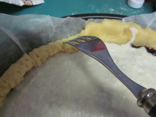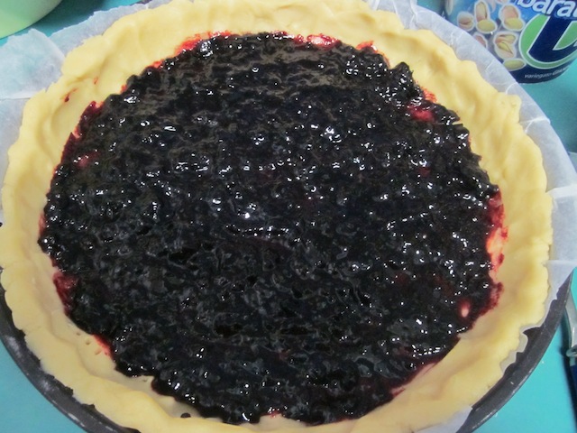 Bucherellare la base con i rebbi di una forchetta e distribuire la marmellata.
