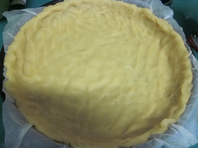 "coperchio chiuso" : 1 min./vel. 6.Stendere la frolla in uno stampo rotondo da 26 cm foderato di carta forno.