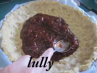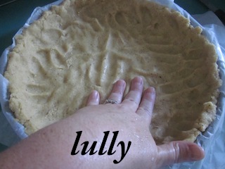 - In uno stampo rotondo da 28 cm foderato da carta forno stendere la frolla aiutandosi con le mani;