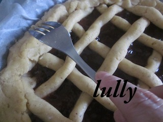 - Ed incrociarli sulla superficie (aiutatevi con un pò di farina, questa frolla è molto friabile e tende a sbriciolarsi!!!);