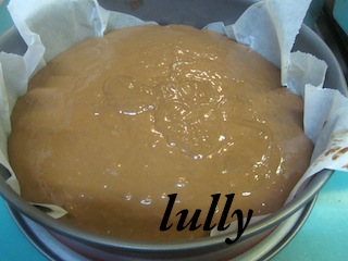 versare il composto ottenuto nello stampo foderato da carta forno e livellare bene.