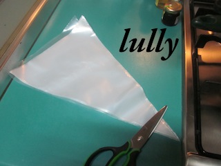 tagliare la punta ad una tasca da pasticceria usa e getta ( in alternativa usare un sacchettino di plastica per alimenti) e riempirla con la nutella.