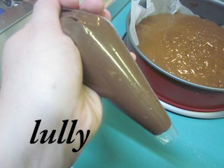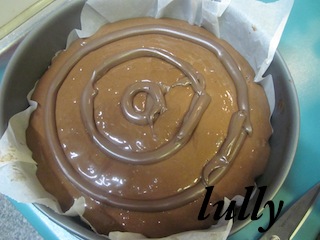 fare 3 cerchi con la nutella sulla torta, uno verso l'esterno, uno nel mezzo e uno al centro.