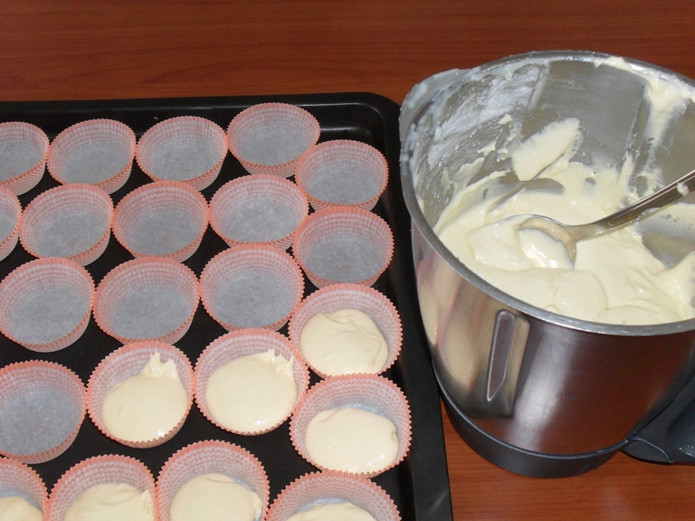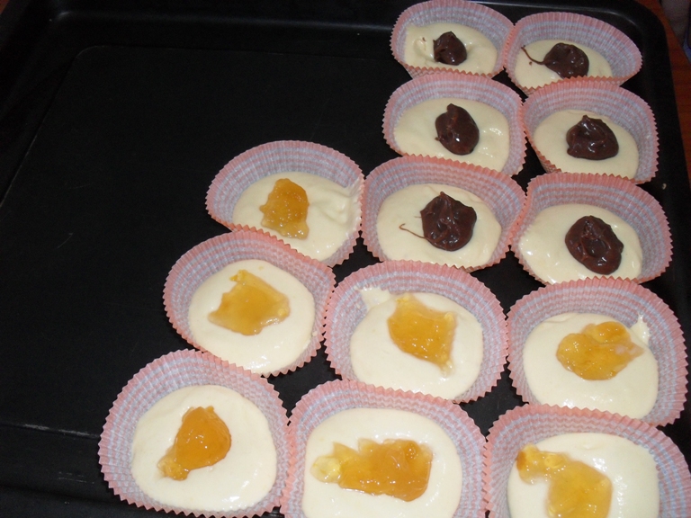 Mettere un cucchiaio di impasto nei pirottini, un cucchiaio di crema e ricoprire con un cucchiaio di impasto, si possono farcire anche con nutella e marmellata basta metterli sopra l’impasto e durante la cottura scendono al centro dei pirottini.