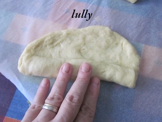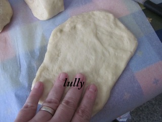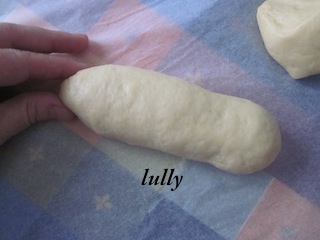 7. Per dare la classica forma di maritozzo prendere ogni pezzo di pasta, spianarlo delicatamente con le dita fino a formare un rettangolo;