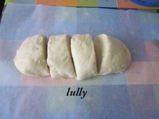 6. Dividere ogni impasto in 4 parti e formare i maritozzi, con l'impasto con le gocce formare 4 panini rotondi;
