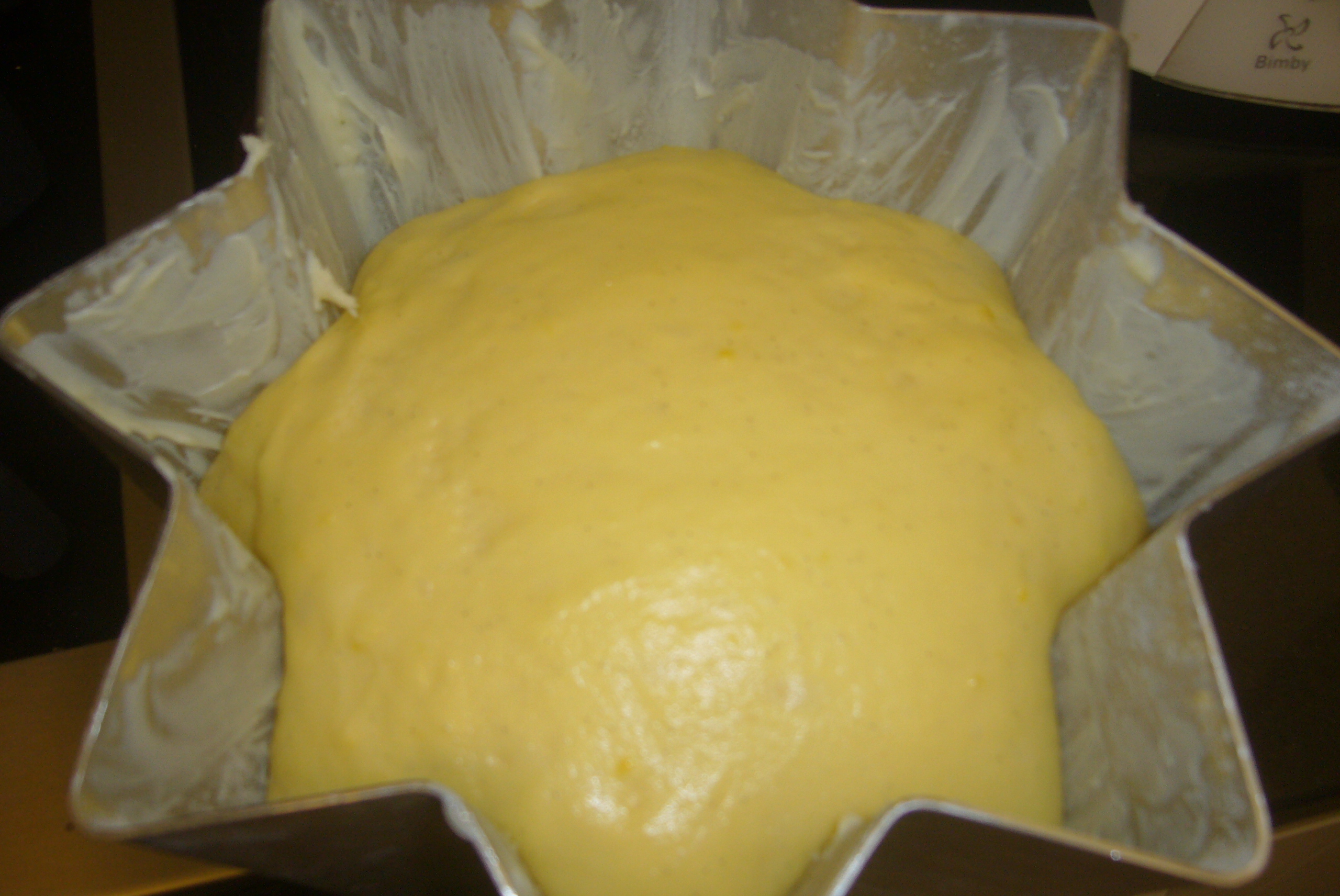 trasferire l'impasto in uno stampo per pandoro da 1 kg imburrato bene e infarinato