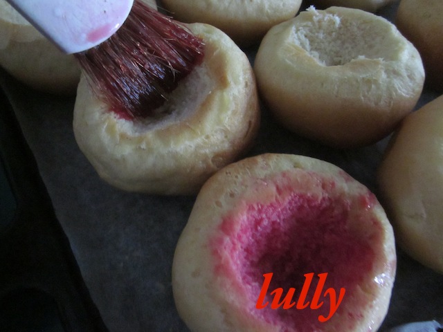 - Con l'aiuto di un coltellino, togliere dal centro di ogni paninetto un po' di pasta in modo che si formi una cavità;