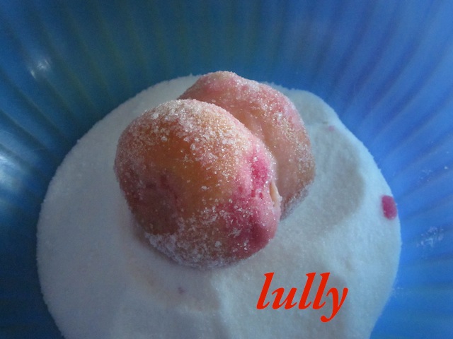 - Successivamente nello zucchero semolato rotolandole bene in modo da ricoprirle;