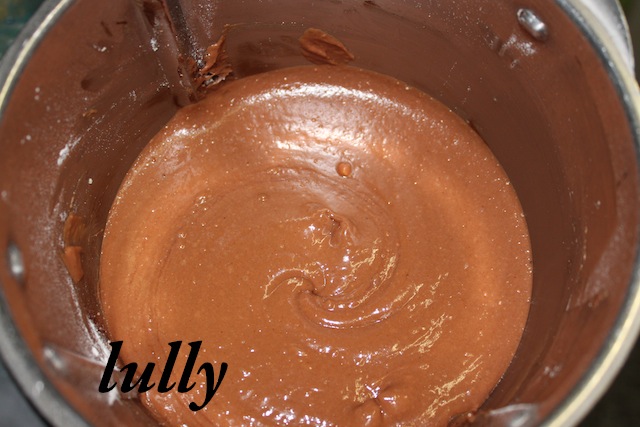 inserire il cioccolato a pezzi e tritare: 5 sec vel 7. aggiungere il burro al cioccolato e fondere: 4 minuti 50° vel 3. aprire il boccale e lasciar raffreddare per qualche minuto il composto.