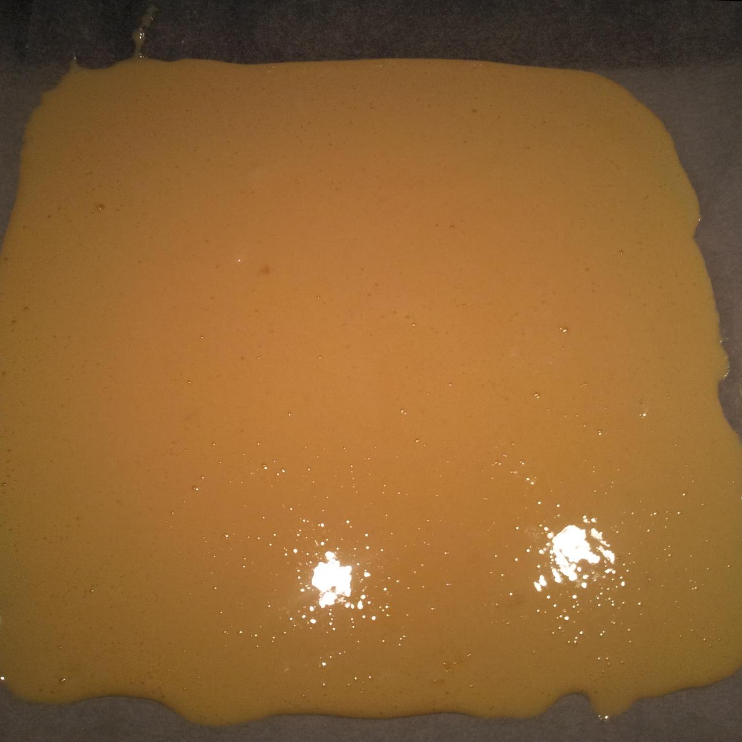 stendere l'impasto su una teglia da forno precedentemente foderata con carta forno unta di burro e inforni 200° per 8 minuti a metà forno.