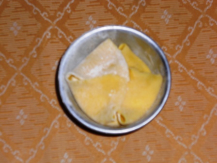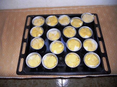 "coperchio chiuso" mettere i tuorli con lo zucchero 4 min vel 4, aggiungere la ricotta,e il lievito 30 sec vel4, infine gli albumi 20 sec vel 3. riprendiamo l'impasto e lavorarlo alla macchinetta della pasta formando delle sfoglie sottili ( io le passo all'ultima tacca ) tagliamo le sfoglie in tanti quadrati. imburrare e infarinare gli stampini. foderare gli stampini con la pasta avendo cura di far fuoriuscire un po d'impasto dai bordi , riempiamoli con 1 1/2 cucchiaio da tavola di crema alla ricotta, coprire con i 4 bordi di pasta in eccesso. infornare 20 min. a 180° . spolverizzare con zucchero a velo
