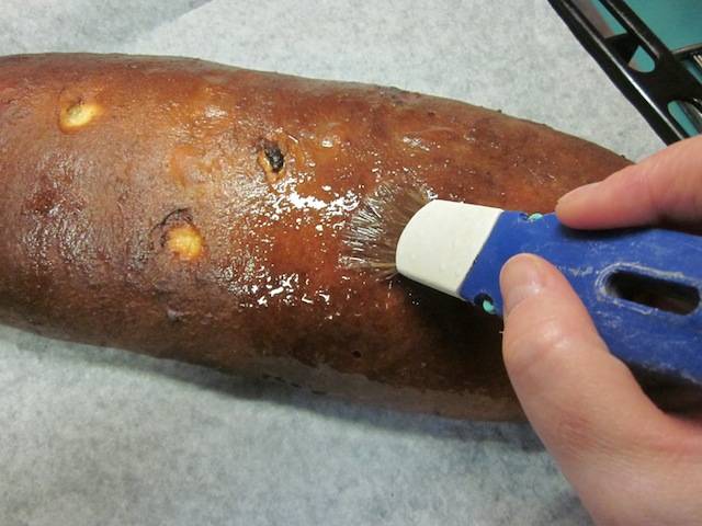 - Togliere dal forno e pennellare con i 40 g di burro fuso;