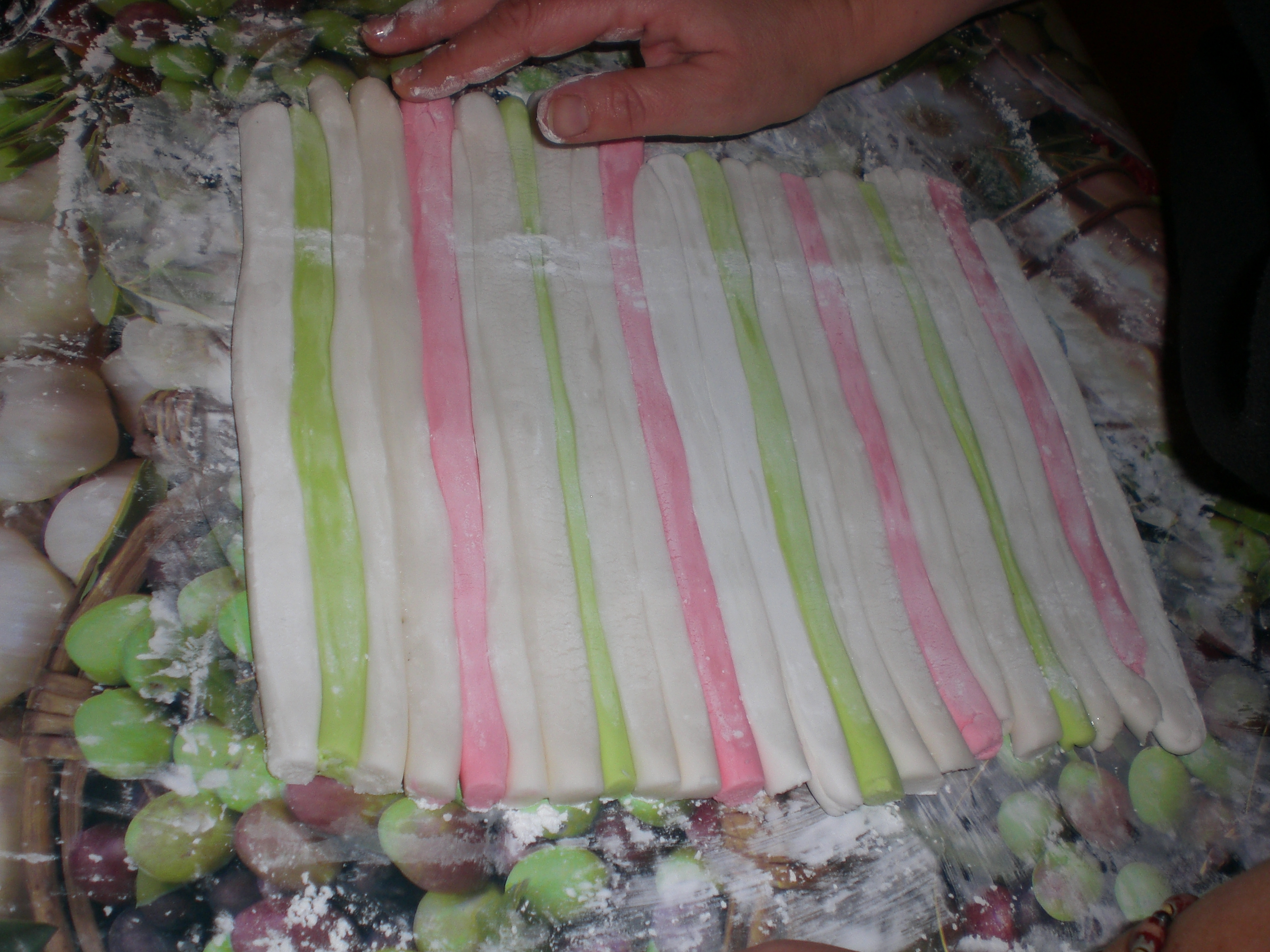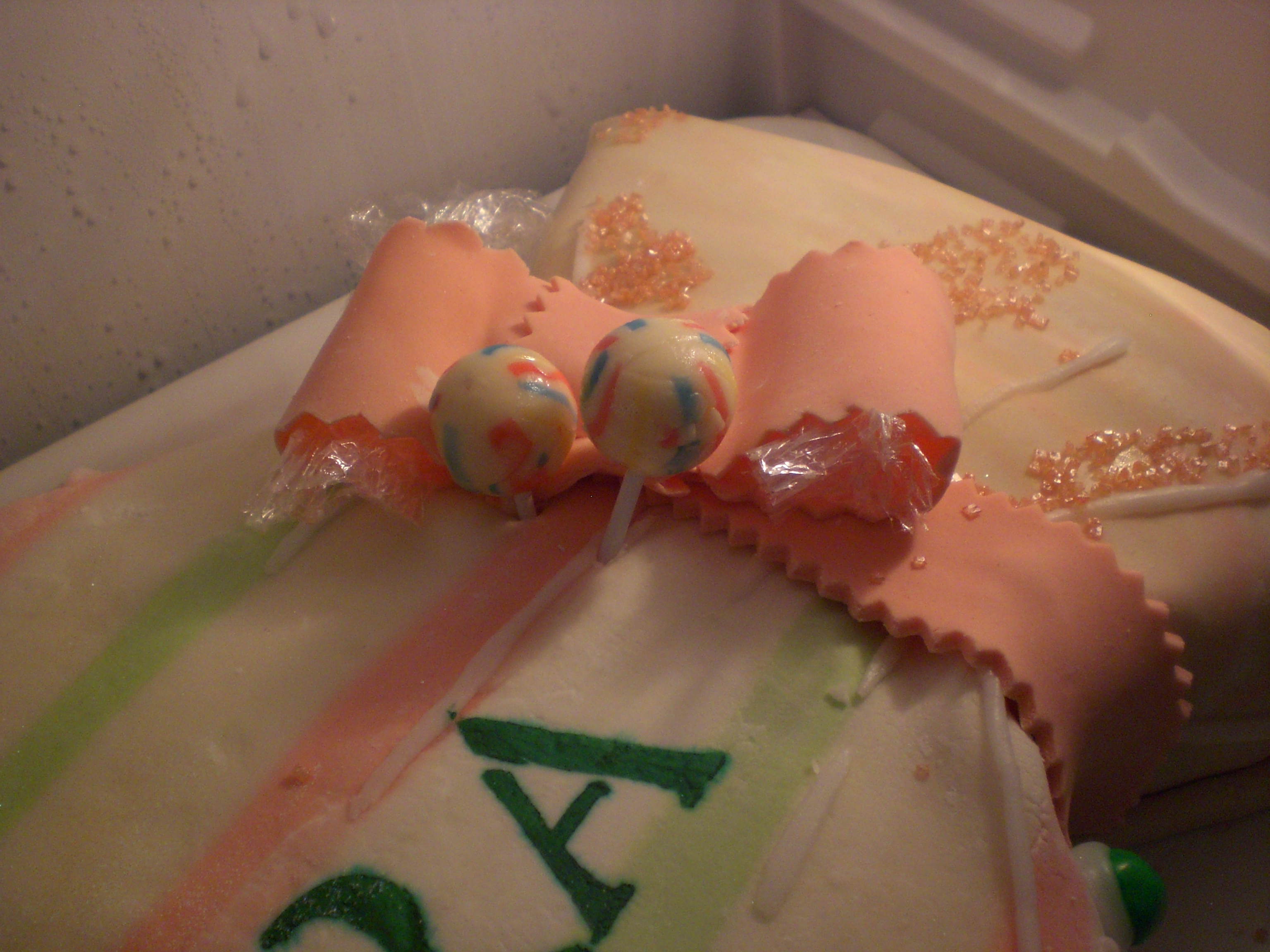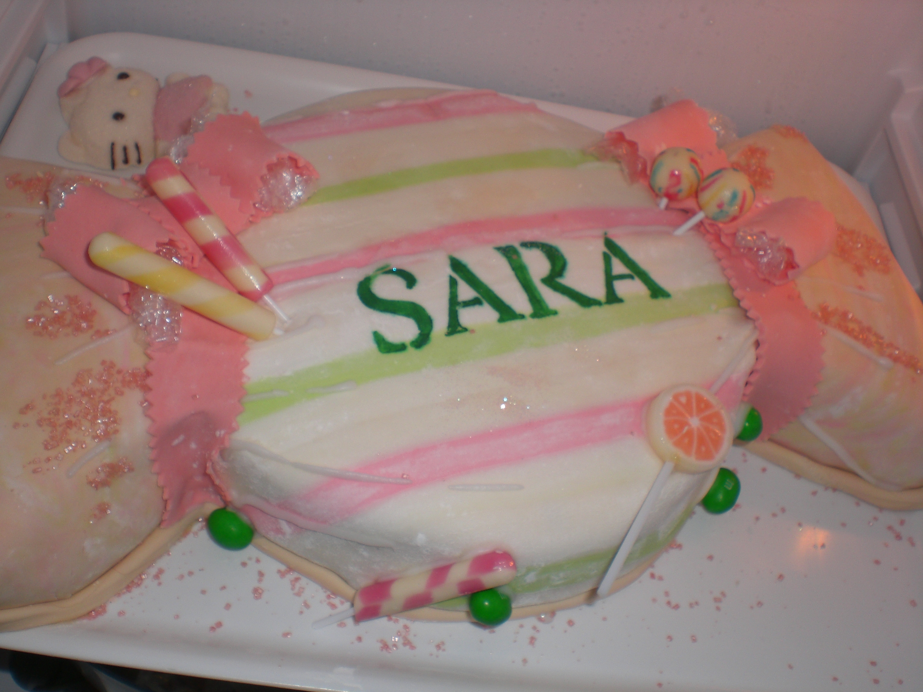 con la pasta di zucchero ho creato la carta colorata. e poi ho aggiunto piccole caramelle e chupa chups.