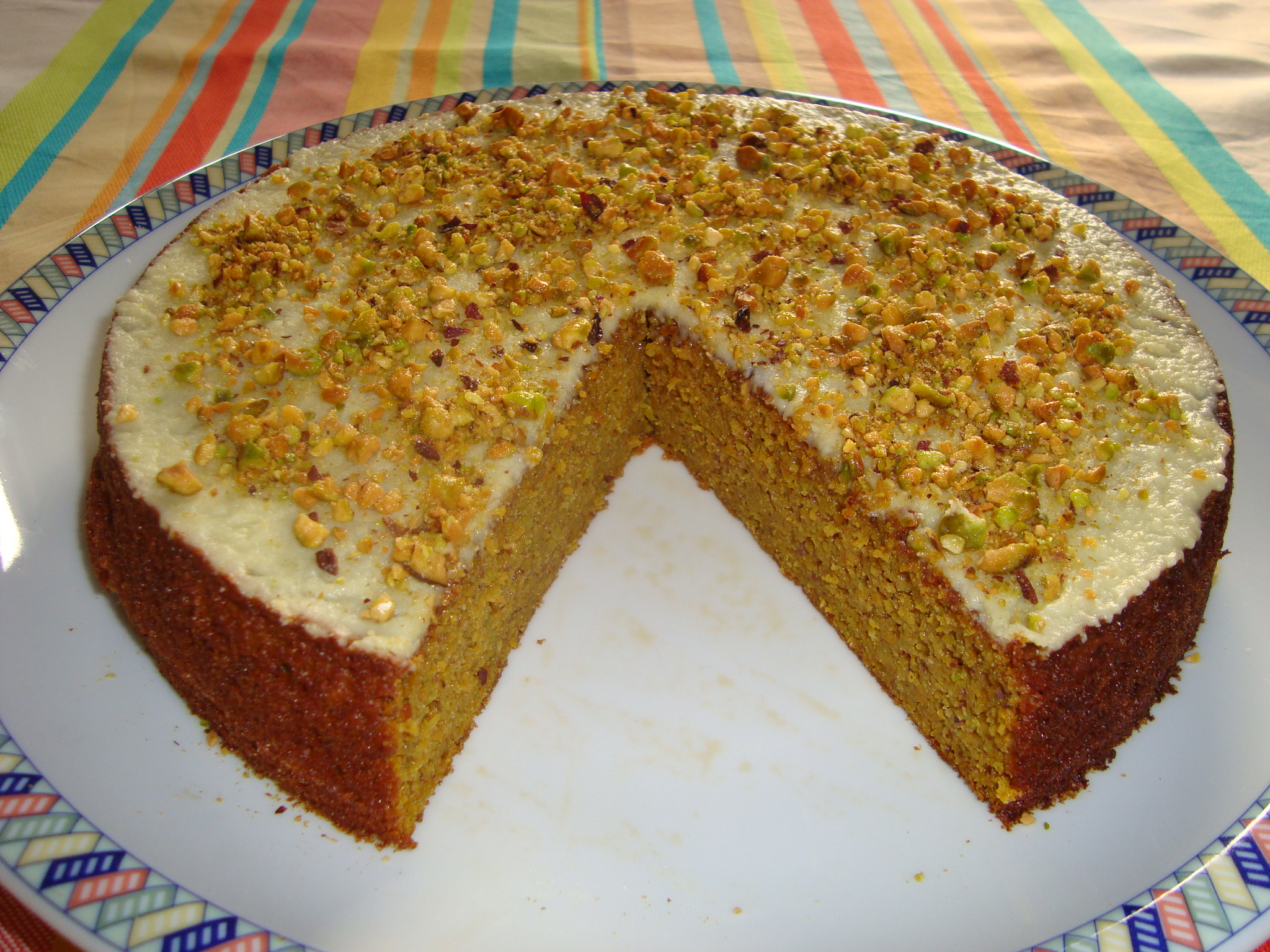 - 300 g carote pelate e tagliate a tocchetti 150 g zucchero 150 g pistacchi (non salati) 4 uova 40 g farina 00 1 bustinalievito per torte 1 limone non trattato per la glassa: 100 g cioccolato bianco 20 g burro 1 cucchiaio limoncello