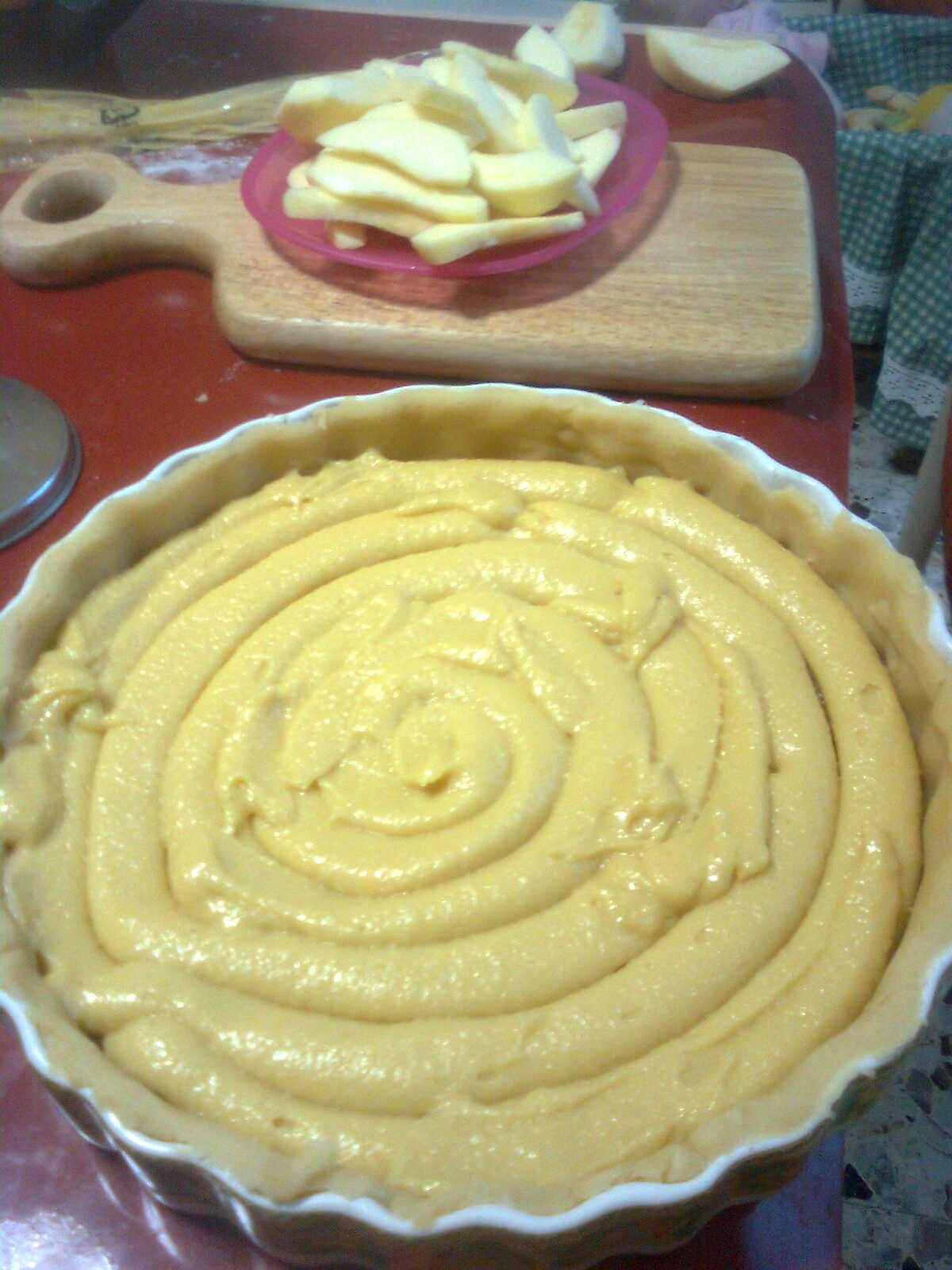 decorare la superficie della torta con le mele