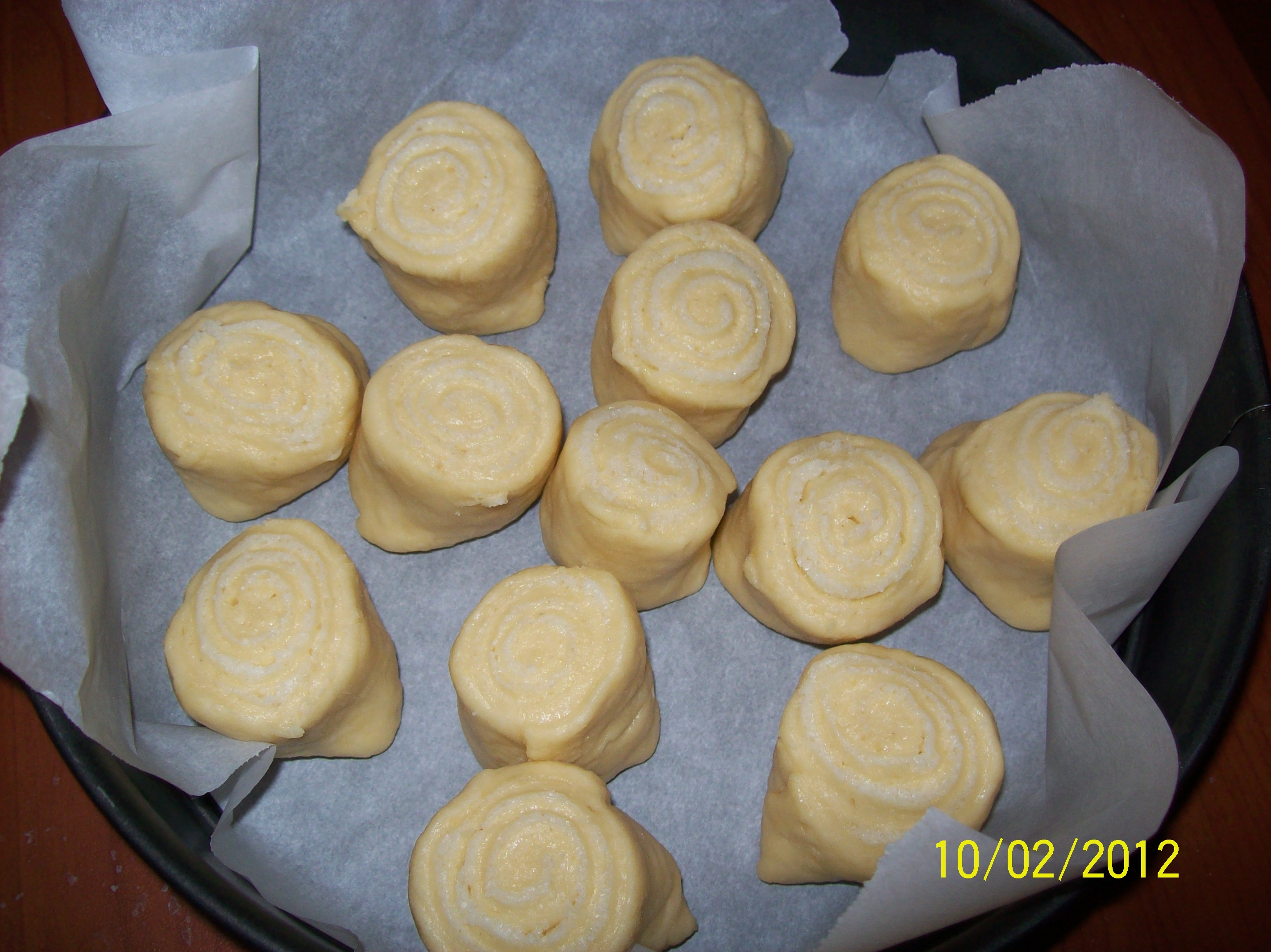 spalmare la crema sulla pasta e arrotolate tagiare di circa 4 cm e che disporrete in verticale in una teglia con carta da forno distanziati fra di loro. per tagliare il rotolo possiamo usare lo spago,far lievitare per 40 min cuocere in forno preriscaldato a 200° per 25 min circa forno statico