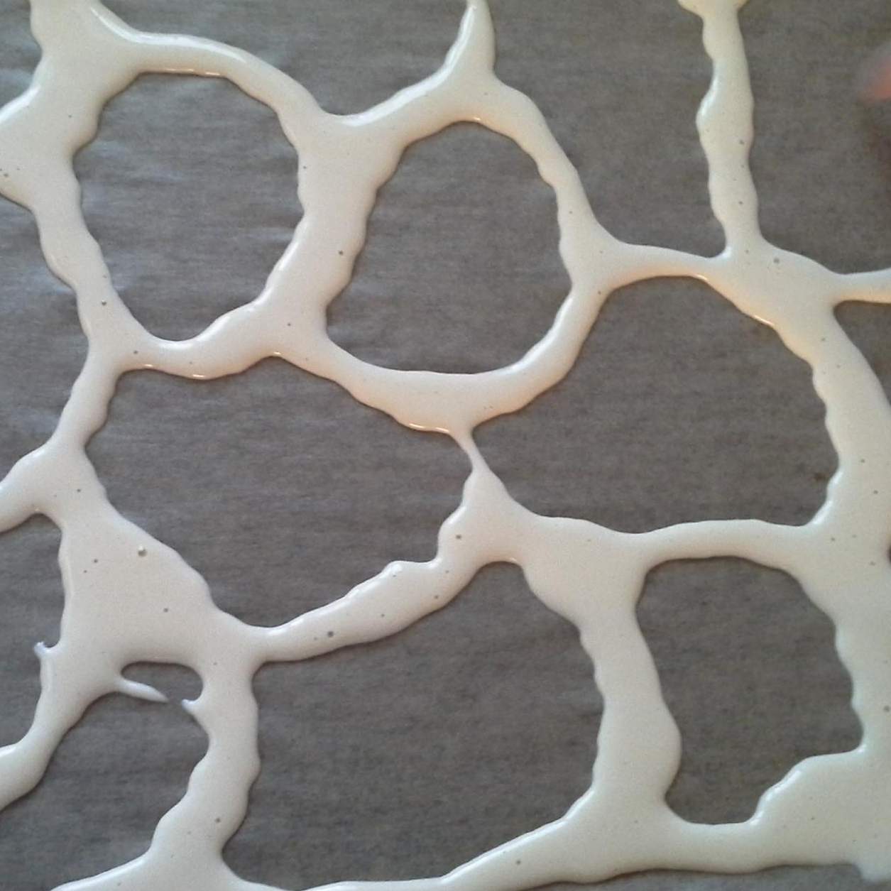 Mettete tanto impasto in una siringa dal beccuccio largo quanto serve e disegnate su una carta da forno grandi cerchi. Infornate a 180 º per 5 minuti.