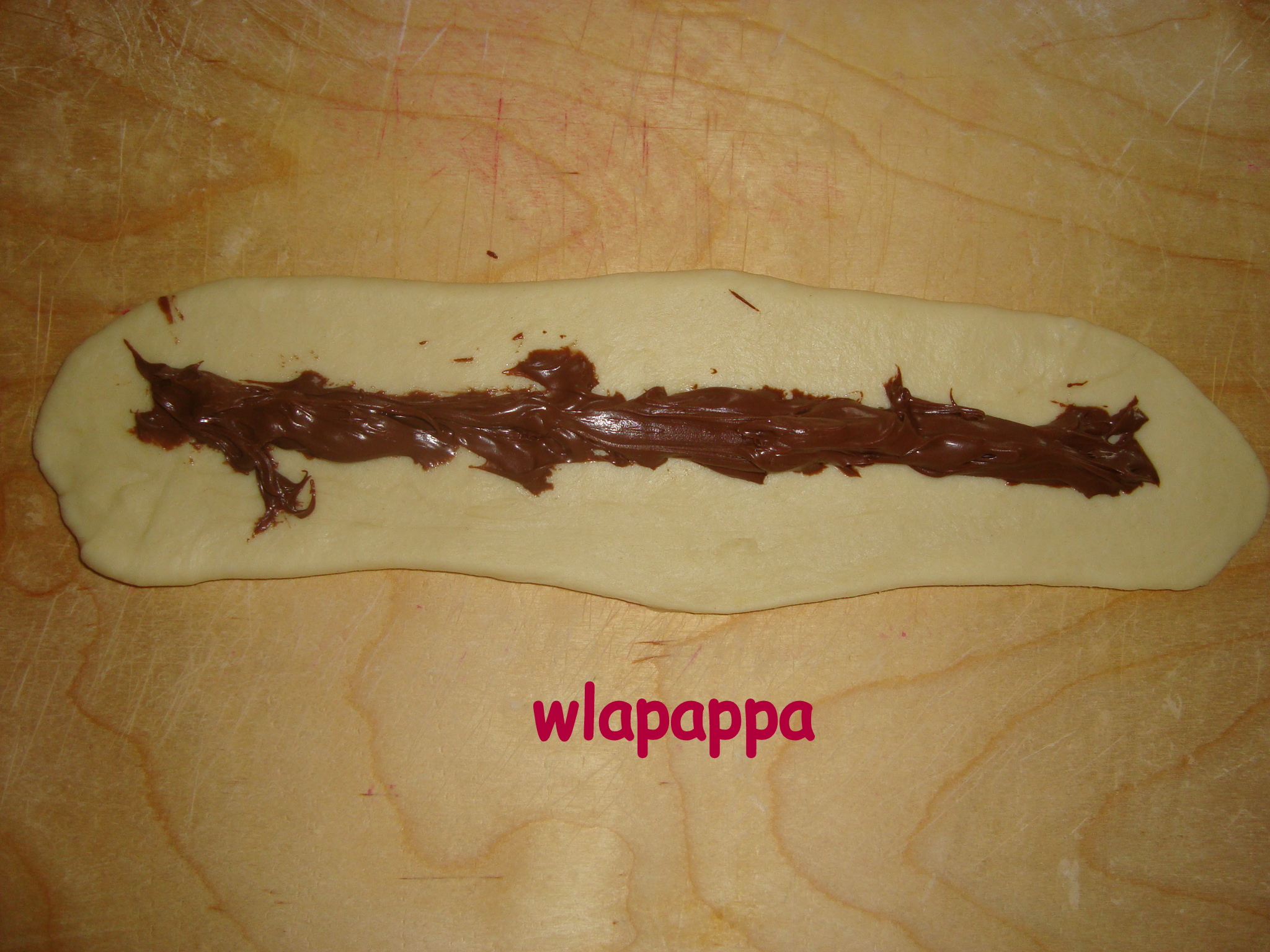 Se si vuole farcire la treccia, dividere l'impasto in tre pezzi (o 6 se si fanno 2 trecce), stendere con il mattarello ogni pezzo d'impasto formando un rettangolo, farcirlo con la nutella o marmellata e poi arrotolare.