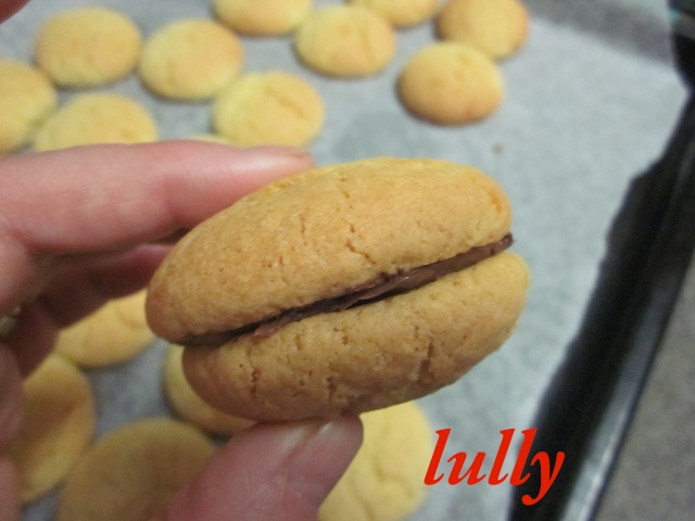 accoppiare i biscotti spalmando la nutella o la marmellata, poi posizionarli in un piatto.