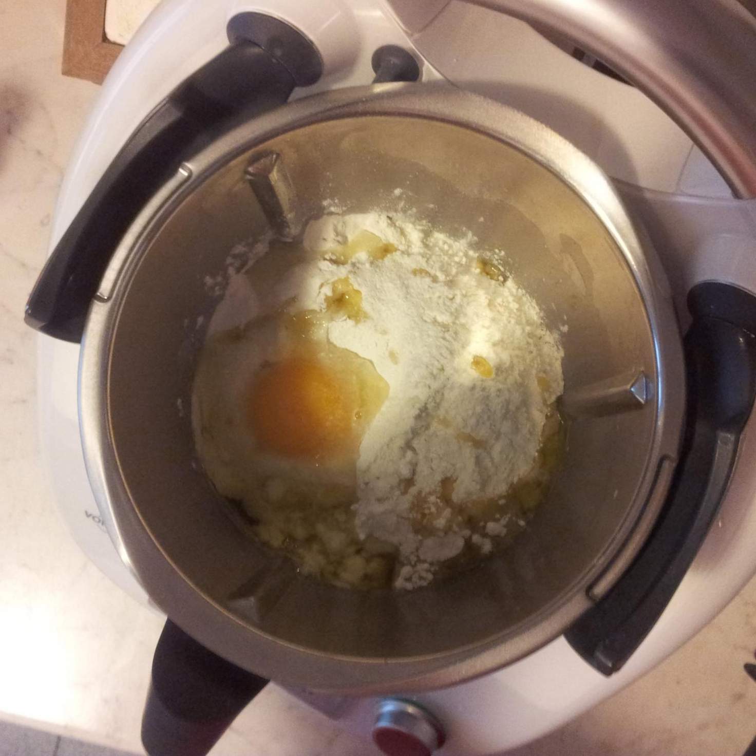 "coperchio chiuso" il latte, lo zucchero e il lievito. Mescolare per 20 sec a vel 2. Aggiungere la farina, l'uovo, il sale e impastare per 2 min vel