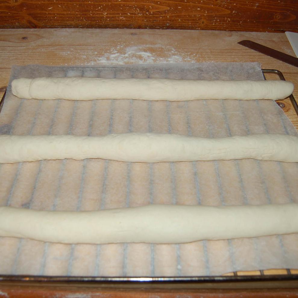 A questo punto, formare un filoncino allungando l'impasto fino ad arrivare a 45 cm circa (si veda video da sito francese).