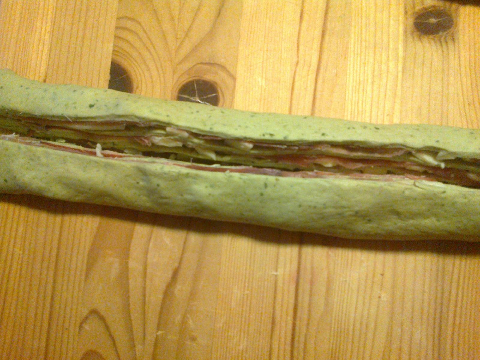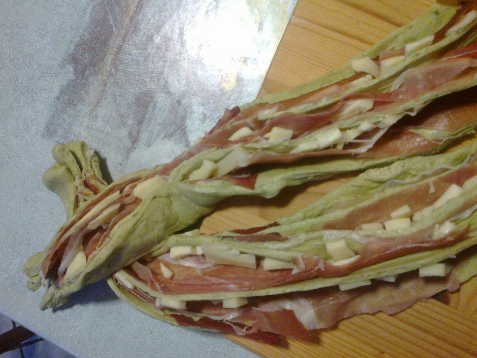 e' molto buona io l'ho assaggiata. all'interno potete sostiruire con qualsiasi cosa....prosciutto cotto, mortadella ...quello che più vi piace.