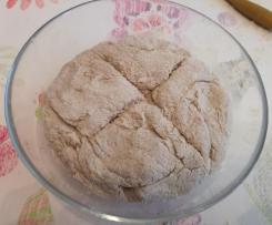 "velocità spiga" e contemporaneamente inserire,mentre impasta piano piano, dal foro del coperchio, tutta acqua, poi l’albume, i 3 cucchiai di olio e infine il sale. Continuare ad impastare fino alla fine dei 3 minuti. Si otterrà un impasto appiccicoso, ma elastico grazie alla cuticola di psillio. Con l'aiuto della spatola mettere l'impasto sul piano di lavoro infarinato con farina di quinoa e formare un panetto. - Mettere il panetto su una ciotola infarinata, tagliare la superficie con un coltello per formare una croce, coprire con un panno asciutto e lasciare lievitare mezz’ora, non di più altrimenti si rischia di far sgonfiare l’impasto.