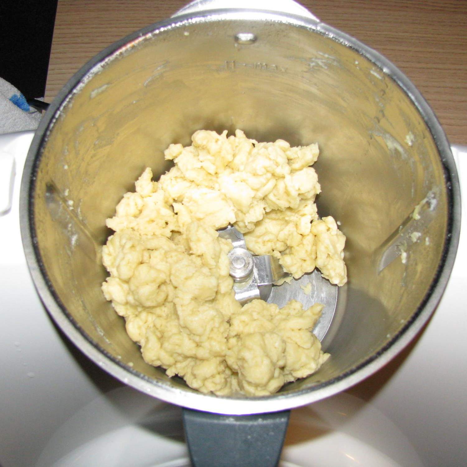 Preparare la pasta al vino, come da ricetta del libro base: versare nel boccale vino e olio, mescolare 10 secondi a velocità 4; aggiungere farina e sale, impastare 1 minuto a velocità spiga.