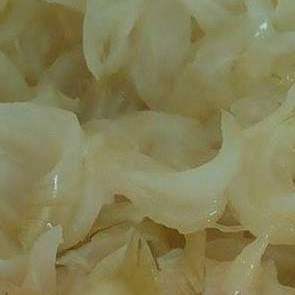 Intanto procedere per la cottura delle cipolle. Nel boccale pulito mettere 40 g. di olio e le cipolle sbucciate  e tagliate a fette sottili  salare e rosolare per 5 min. 100 vel.1 proseguire per altri 5 min. varoma vel. 1, lasciar raffreddare ed eventualmente scolare se vi è rimasta un pò di acqua di cottura.