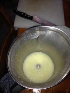Versare nel boccale del bimby le patate a cubetti con la loro acqua e frullare per 30 secondi partendo da vel.1 a turbo gradatamente. Quando il composto è frullato metterlo a raddreddare fino ad ottenere una temperatura tiepida in modo che non sia troppo caldo da inibire l'azione del lievito.
