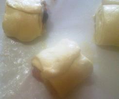 - Con le mani unte di olio, fare un rotolo, tagliate a pezzi di circa 10 cm cadauno, sempre con le mani unte prendere ogni pezzo e arrotolate su se stessa a formare una girella.