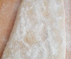 "velocità spiga" . - Con un matterello, stendere l’impasto sul piano di lavoro spolverato con semola di grano duro e dargli una forma di lungo filone schiacciato, poi ungere la superficie con olio e spolverare con la solita farina.