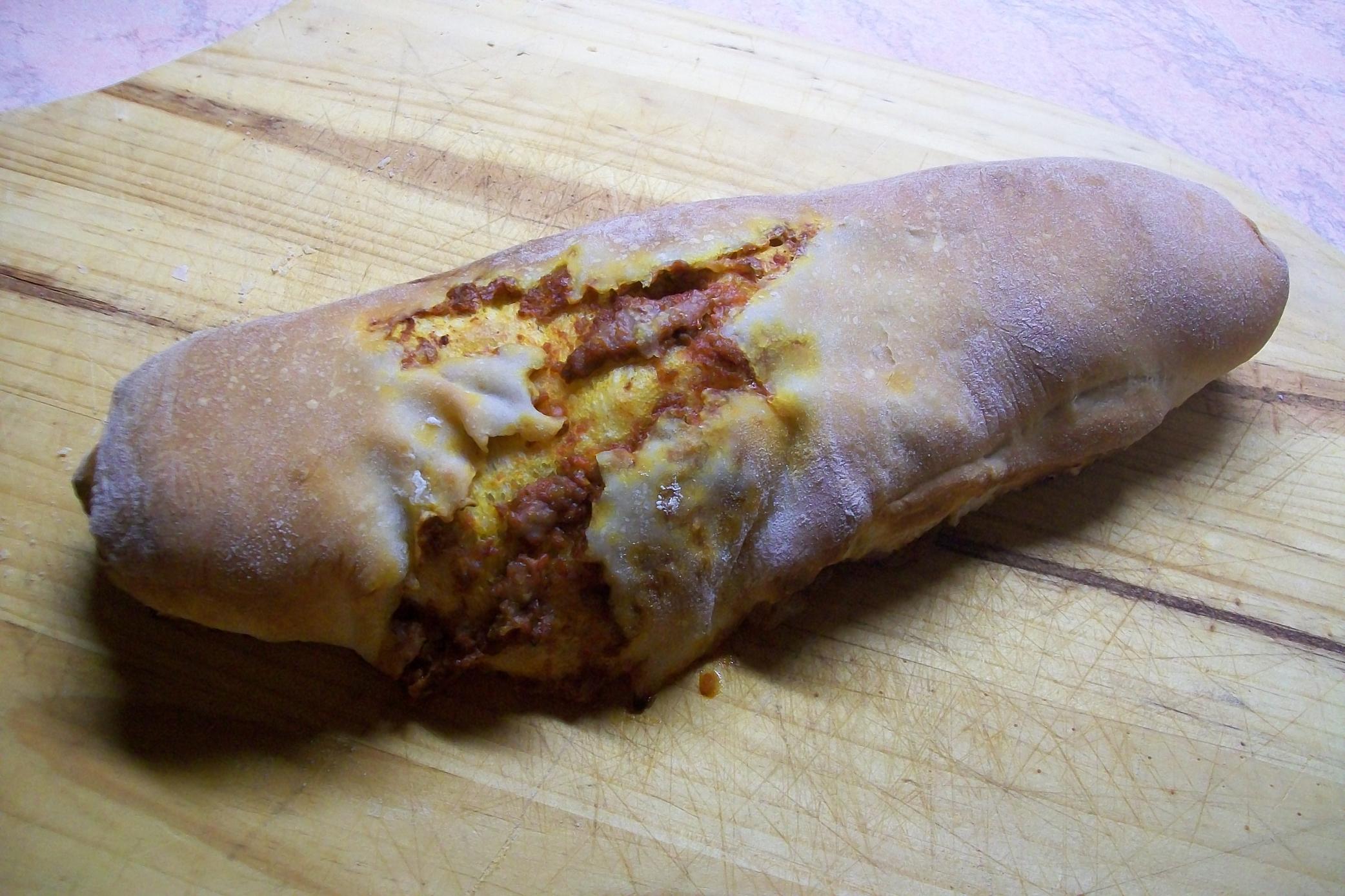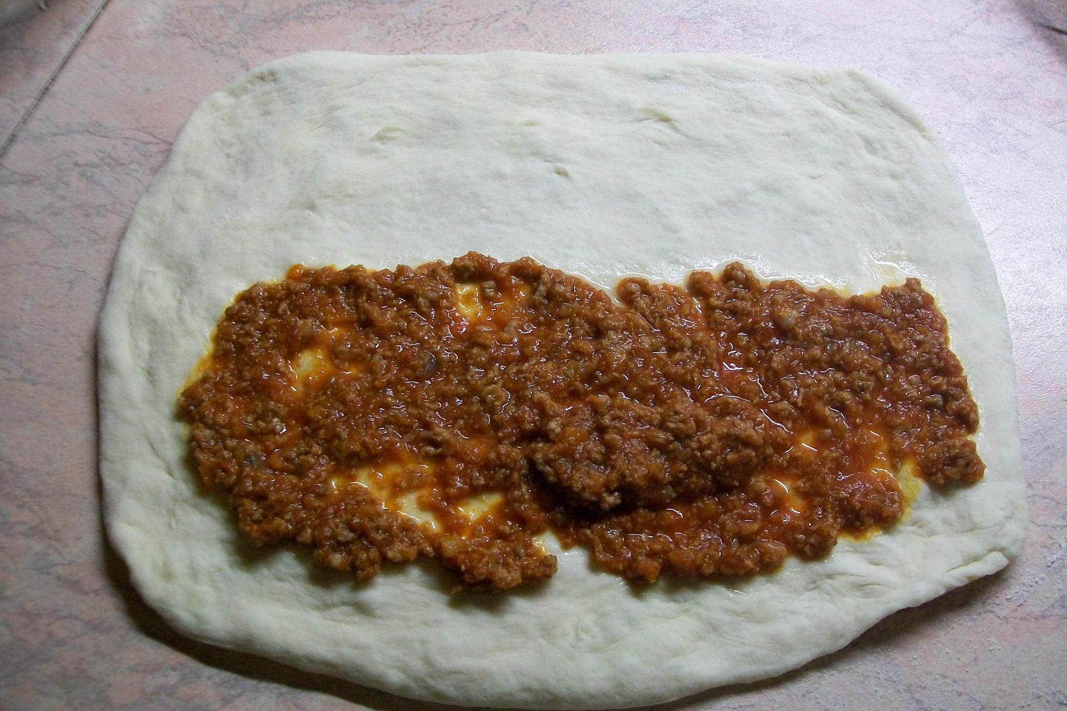 dividere l'impasto in 6 pezzi, stenderlo in forma rettangolare ( circa) spalmare su ogni rettangolo il ragù e siate generosi poi avvolgere e formare il salamino