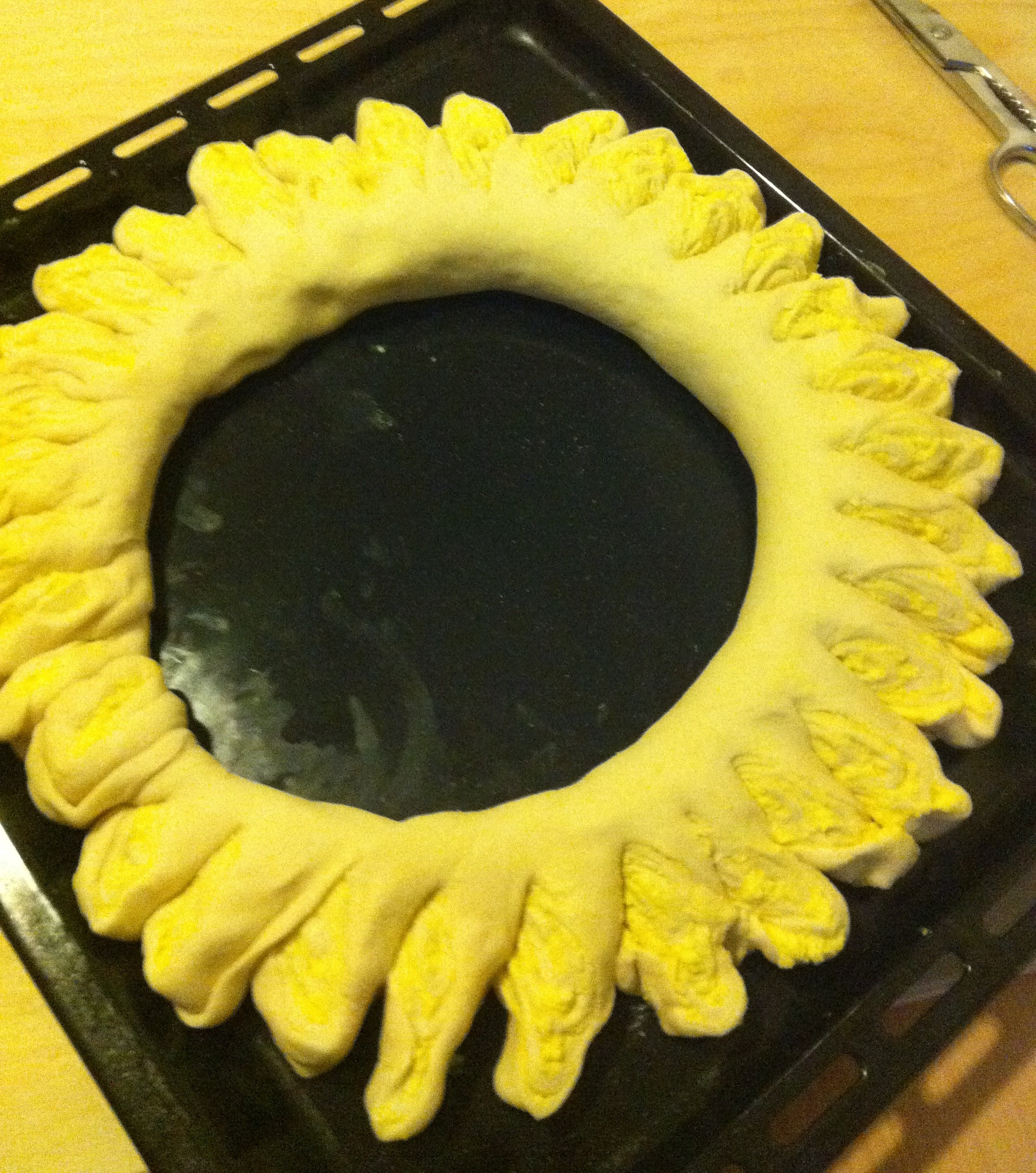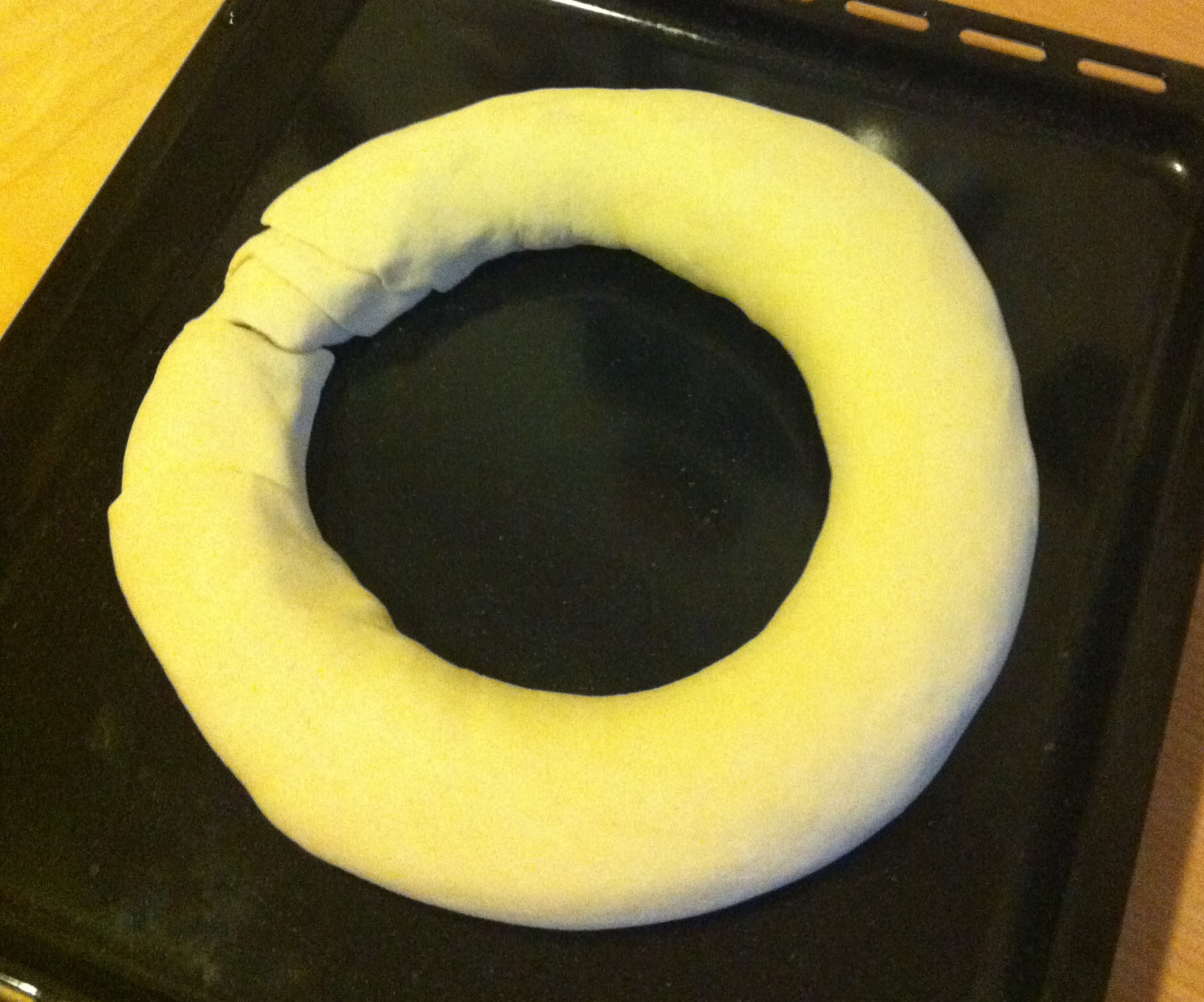 chiudere a cerchio sulla lastra del forno (mi raccomando che sia bassa ai bordi!).