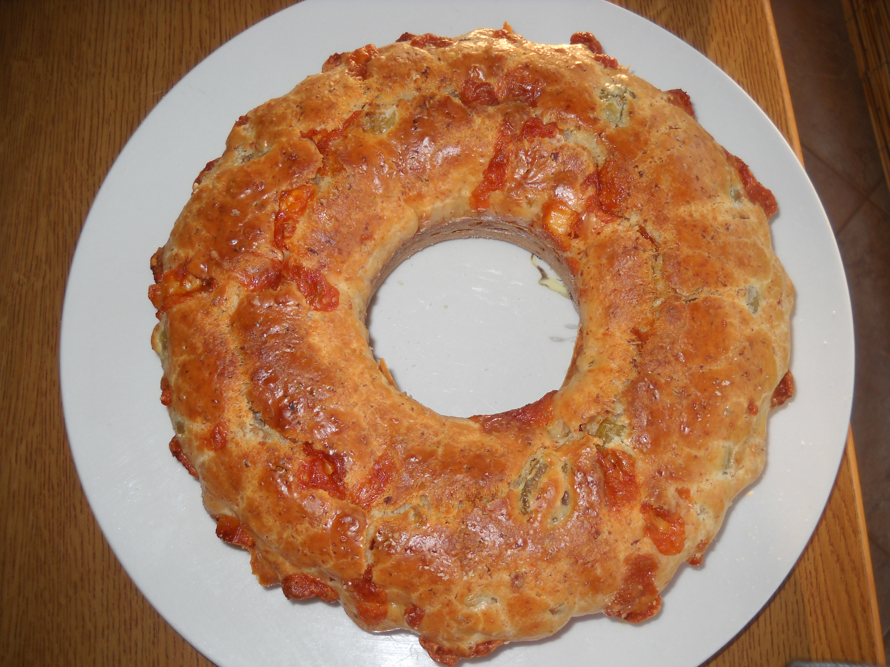 Accendo il forno a 180°; spennello di olio e infarino lo stampo. Inforno per 45 min.Provenienza : La ricetta l'ho letta in una rivista di cucina e adattata