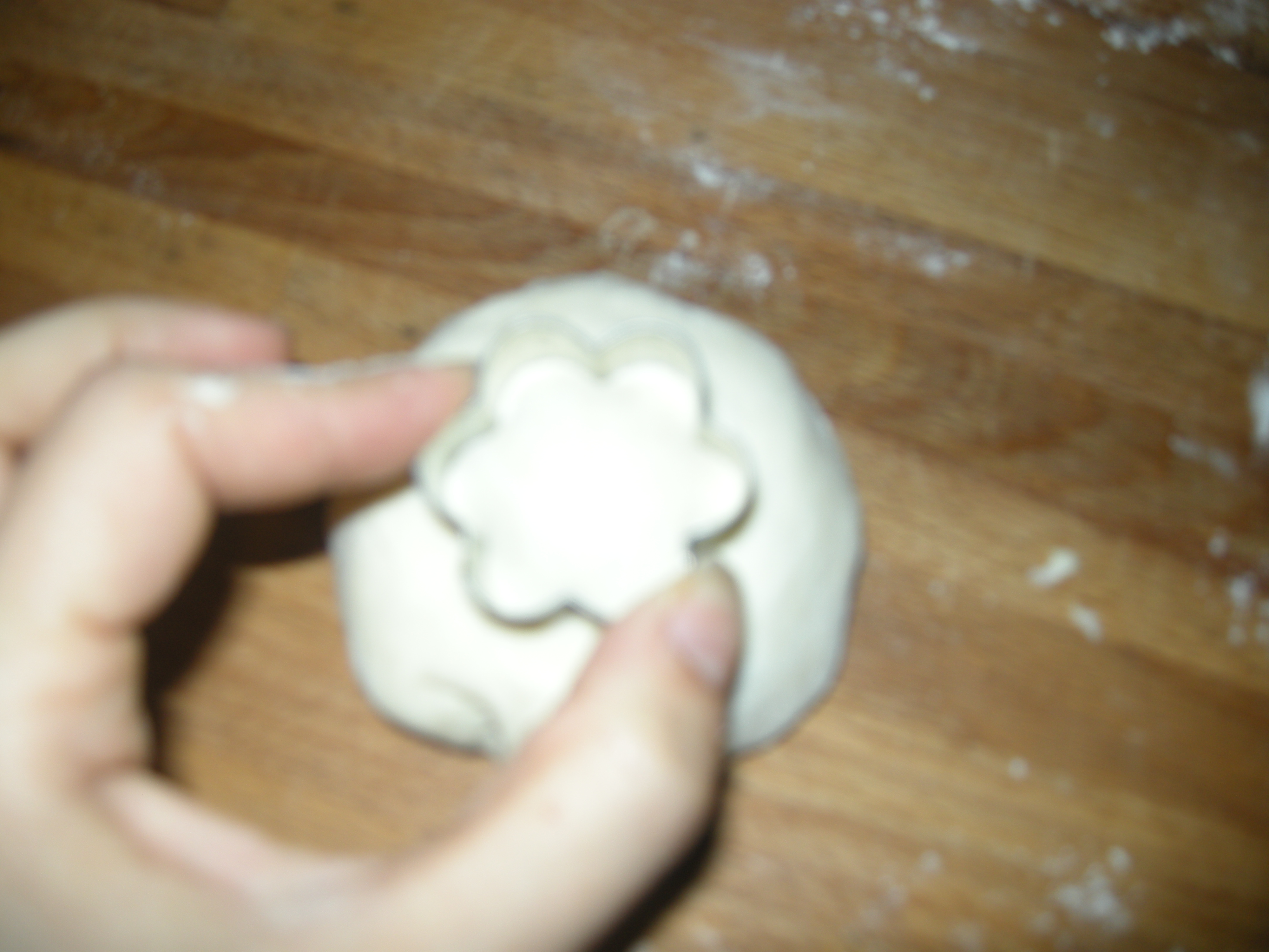 Formare delle palline da incidere al centro con il tagliapasta a forma fiore.