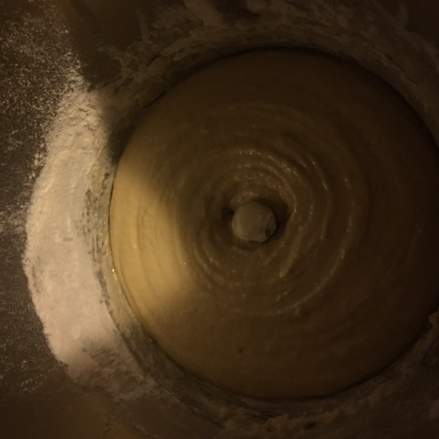 "coperchio chiuso" il latte e il mezzo cubetto di lievito. 2 min. 37° vel.2Dobbiamo ottenere un impasto molto soffice,