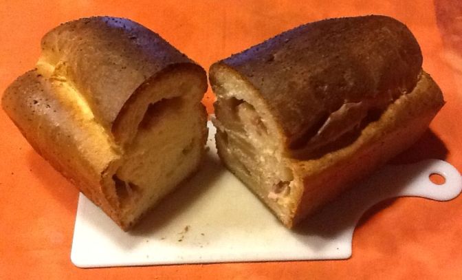 Stendi la pasta, tagliala in 3 parti ed ognuna di queste riempila con il ripieno, chiudi in modo che il ripieno non esca e appoggiale nella teglia da plumcake per la 2a lievitazione,