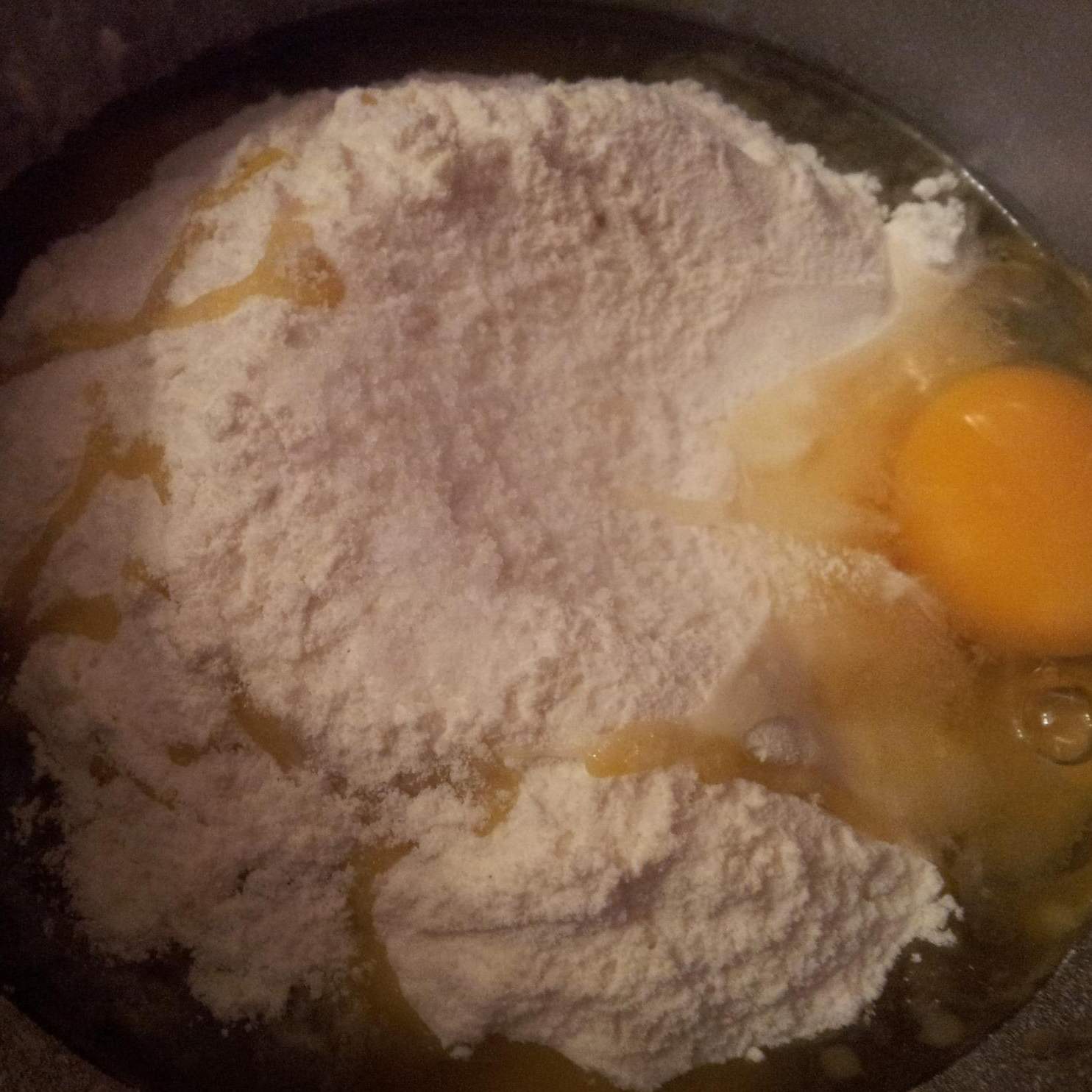 Aggiungere il resto degli ingredienti e impastare 3 min. vel.
