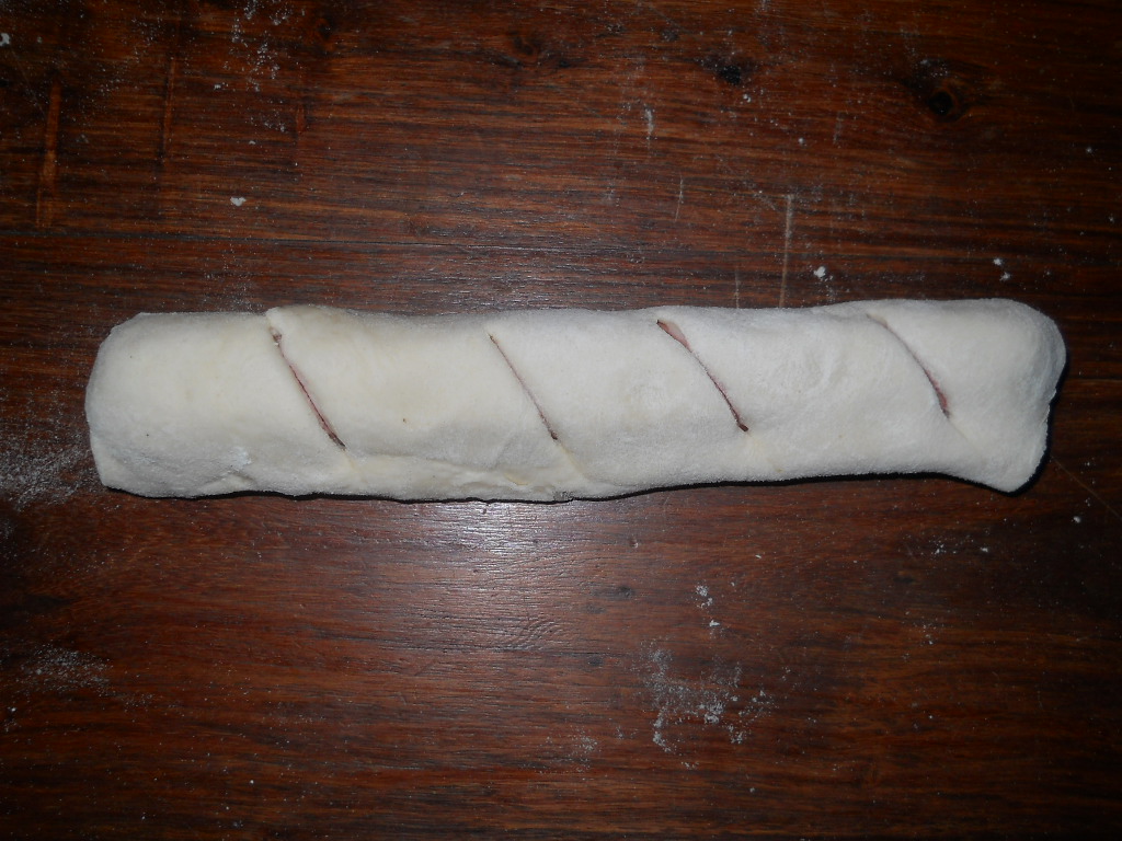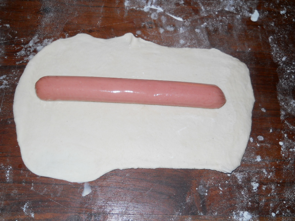 Quando l'impasto e' pronto stenderlo bene e ricavate 8 rettangoli in modo di avvolgere bene i wurstel e tagliate la pasta in eccesso poi fate dei tagli trasversali in modo di tagliare bene anche i wurstel per una cottura migliore