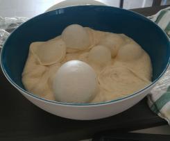 12. Rimuovere la ciotola dal frigorifero e lasciare riposare a temperatura ambiente coperta anche con un canovaccio per 5 ore, la formazione di bolle è un buon segnale.