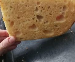 15. Condire l'impasto con pomodoro (io condisco il pomodoro con olio, sale, origano e un pizzico di zucchero), e cuocere a 250° nella zona più bassa del forno (teglia appoggiata sul fondo) per 10 minuti.
