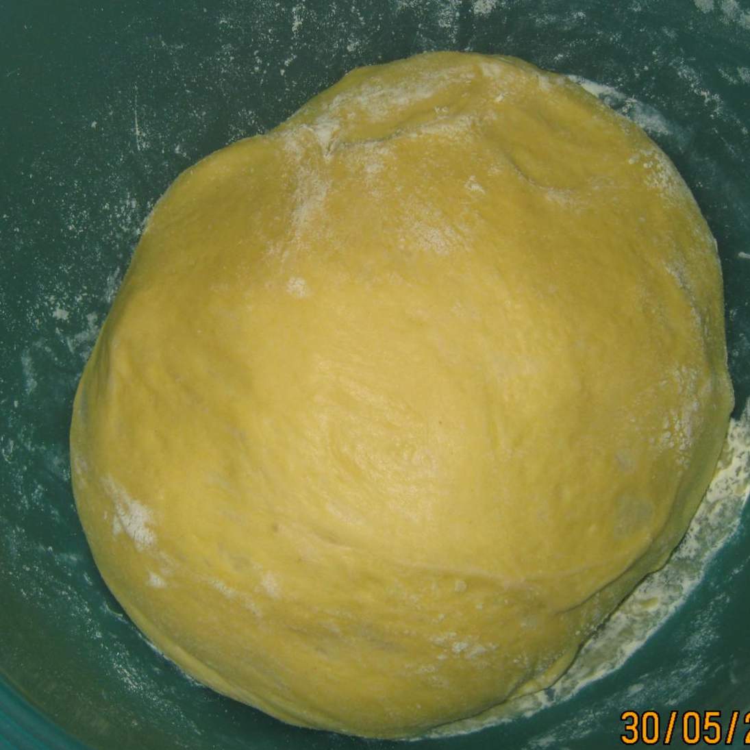 "velocità spiga" , deve essere morbido all'occorenza aggiungere del latte.Mettere in una ciotola coperta da pellicola trasparente e lasciare lievitare fino al raddoppio./ci vorranno 3/4 ore , se avete fretta mettere tutto il cubetto di lievito)