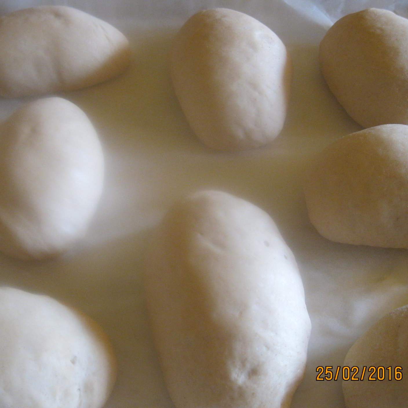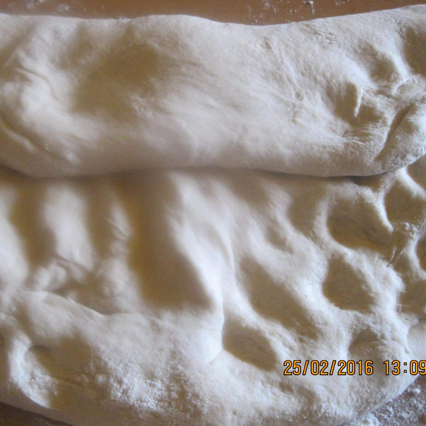 Sgonfiare l'impasto fare tre giri di pieghe e formare 12 panini ovale