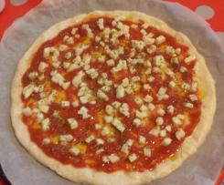 5. Stendere l'impasto e dare la forma rotonda, guarnire con la passata di pomodoro, la mozzarella tagliata a piccoli cubetti, sale, pepe, origano e olio qb;