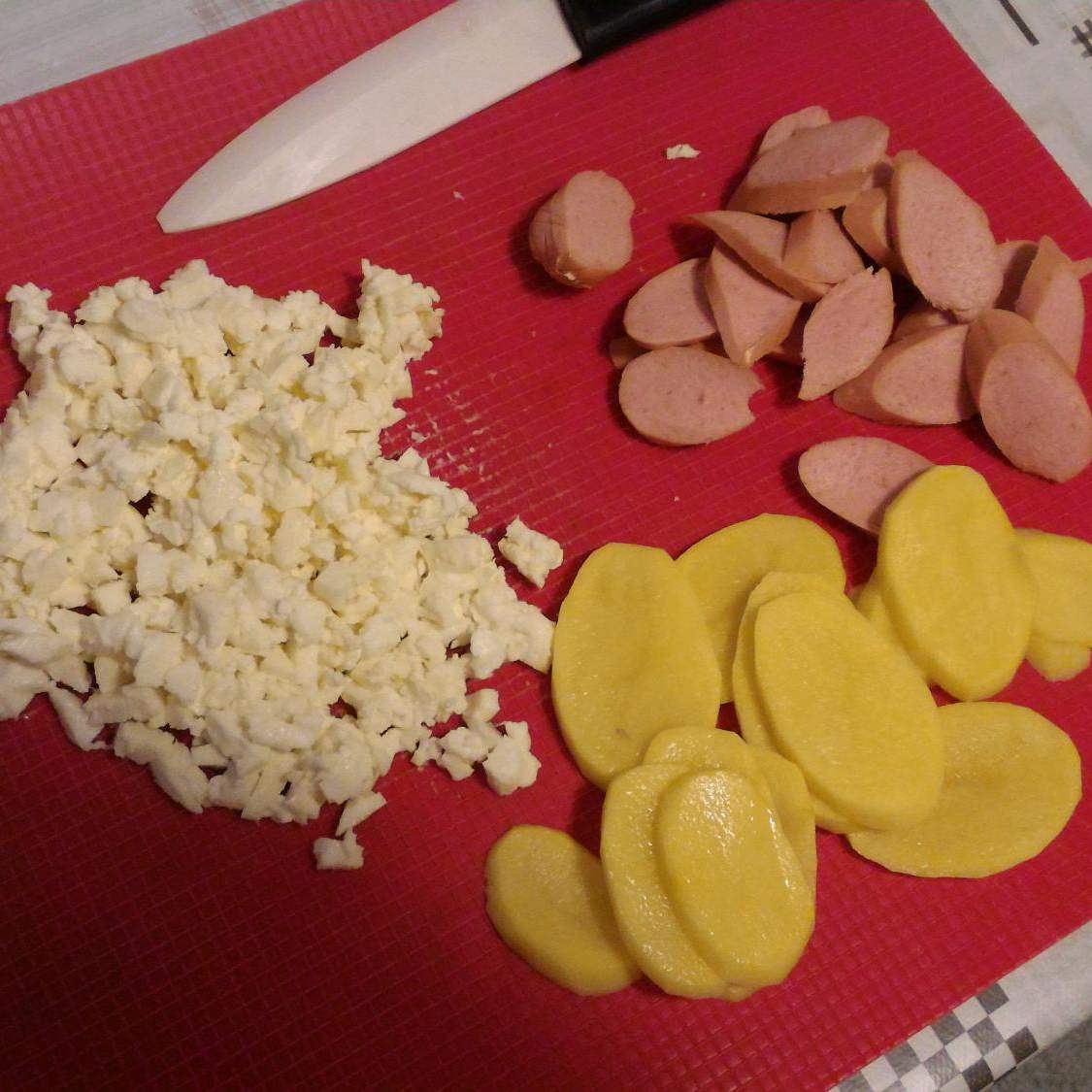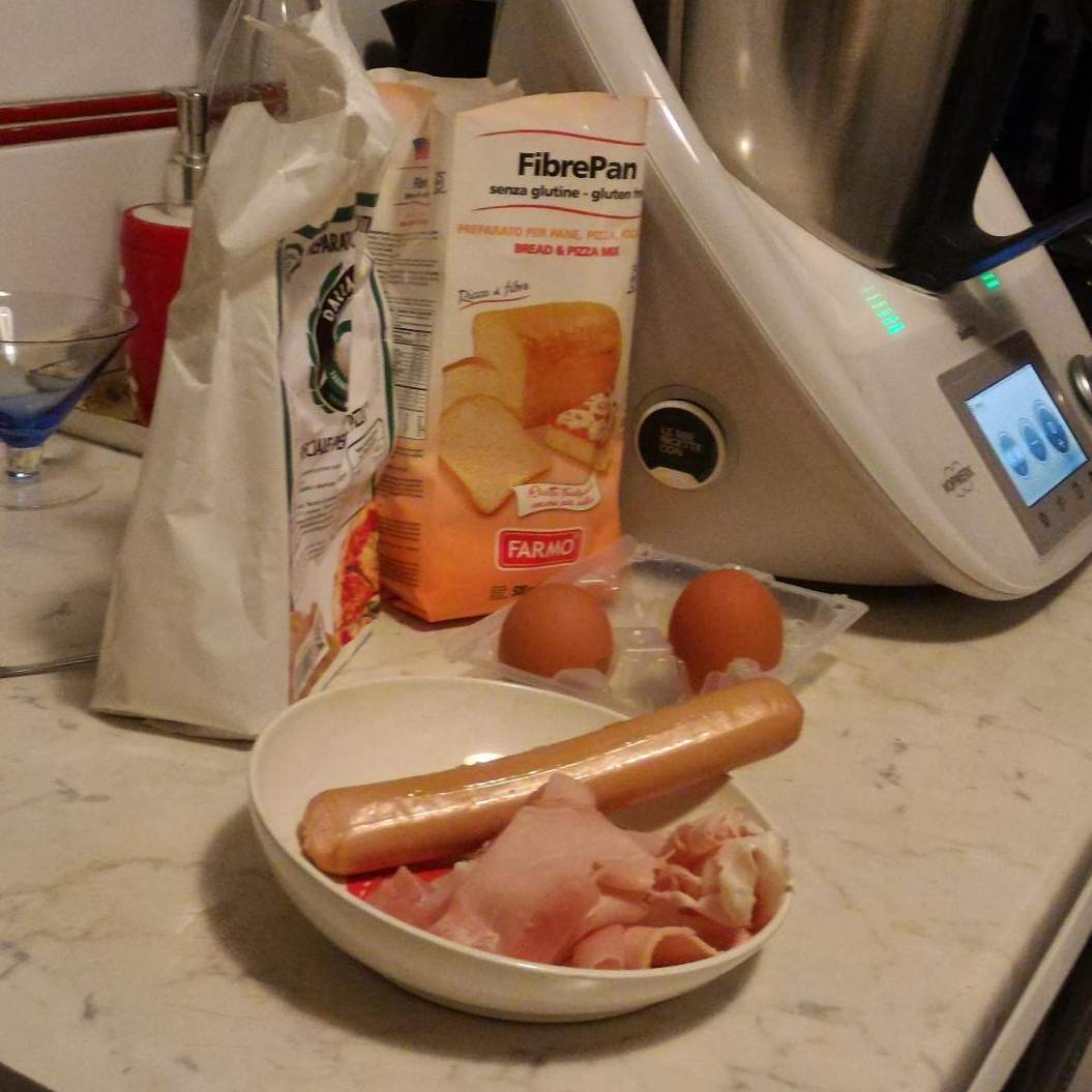 "coperchio chiuso" per 6 sec vel 5, mettere da parte. Sbucciare e tagliare a fettine sottili la patata. Tagliare a fettine anche il wurstel.3. Fare l'impasto: Mettere nel