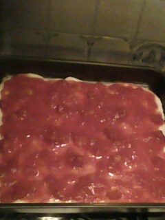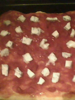 "velocità spiga" , senza misurino.Togliere la pasta dal boccale, dargli la forma di palla, porre in una ciotola infarinata, fare un taglio a croce, coprire con un panno e lasciar lievitare finché raddoppia di volume (1 o 2 ore). Poi stendere la pasta, con l'aiuto di un matterello, e sistemarla in una teglia antiaderente (oppure ricoperta da carta da forno) 35x35 cm. e lasciar lievitare ancora nella teglia per almeno mezz’ora.