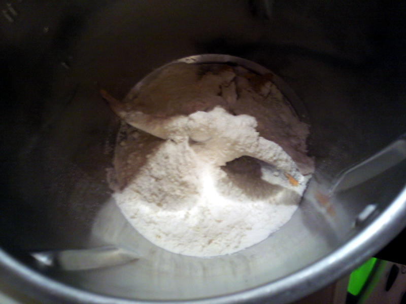 Mettere la buccia d'arancia e 50 gr di farina 0 nel boccale e polverizzare: 10'' vel turbo.