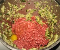 "coperchio chiuso" cipolla e patate 3 Sec. Vel. 7. - Aggiungere il macinato, l'uovo e il trito aromatico, amalgamare 10 Sec. Vel. 4.